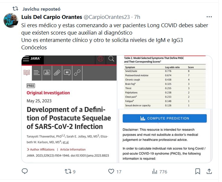 Si eres médico y estas comenzando a ver pacientes Long COVID debes saber que existen scores que auxilian al diagnóstico Uno es enteramente clínico y otro te solicita niveles de IgM e IgG3 Conócelos