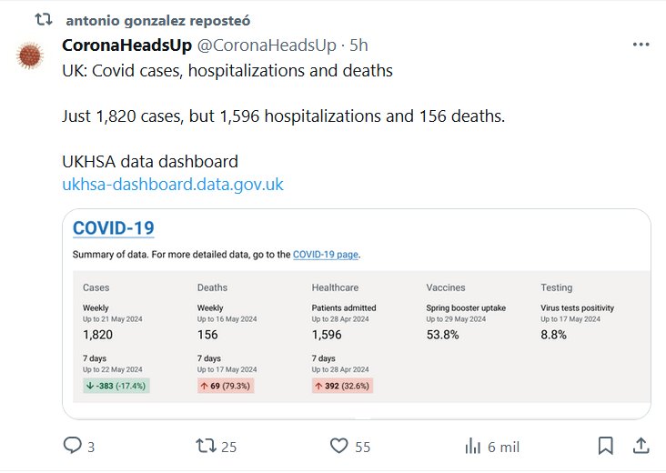 GOTEANDO SANGRE (EN INGLÉS) Reino Unido: casos de Covid, hospitalizaciones y muertes Apenas 1.820 casos, pero 1.596 hospitalizaciones y 156 muertes Posted on junio 2, 2024 por coronado