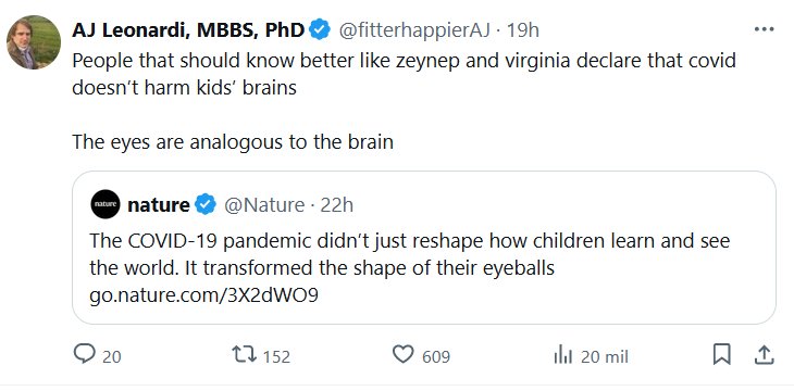 EN INGLÉS Nature @Nature La pandemia de COVID-19 no solo cambió la forma en que los niños aprenden y ven el mundo. Transformó la forma de sus globos oculares Posted on junio 3, 2024 por coronado https://www.nature.com/articles/d41586-024-01518-2?utm_medium=Social&utm_campaign=nature&utm_source=Twitter#Echobox=1717064769