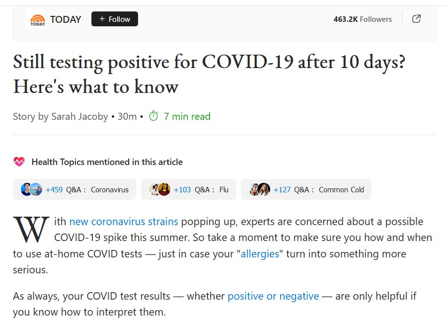 EN INGLÉS ¿Sigues dando positivo por COVID-19 después de 10 días? Esto es lo que debes saber Con la aparición de nuevas cepas de coronavirus, los expertos están preocupados por un posible pico de COVID-19 este verano. Así que tómate un momento para asegurarte de cómo y cuándo usar las pruebas de COVID en casa