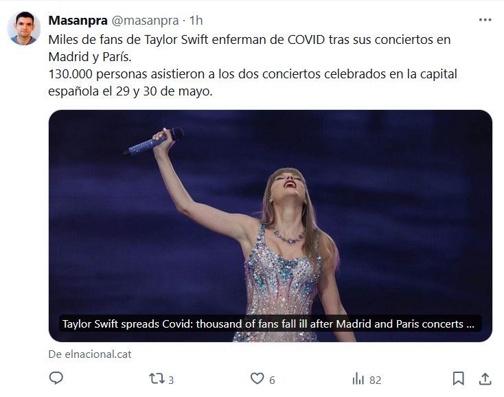 $HOW MUST GO ON Miles de fans de Taylor Swift enferman de COVID tras sus conciertos en Madrid y París. 130.000 personas asistieron a los dos conciertos celebrados en la capital española el 29 y 30 de mayo