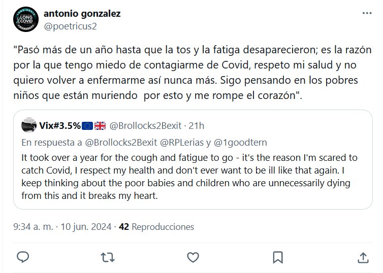 TESTIMONIOS «Pasó más de un año hasta que la tos y la fatiga desaparecieron; es la razón por la que tengo miedo de contagiarme de Covid, respeto mi salud y no quiero volver a enfermarme así nunca más. Sigo pensando en los pobres niños que están muriendo por esto y me rompe el corazón»