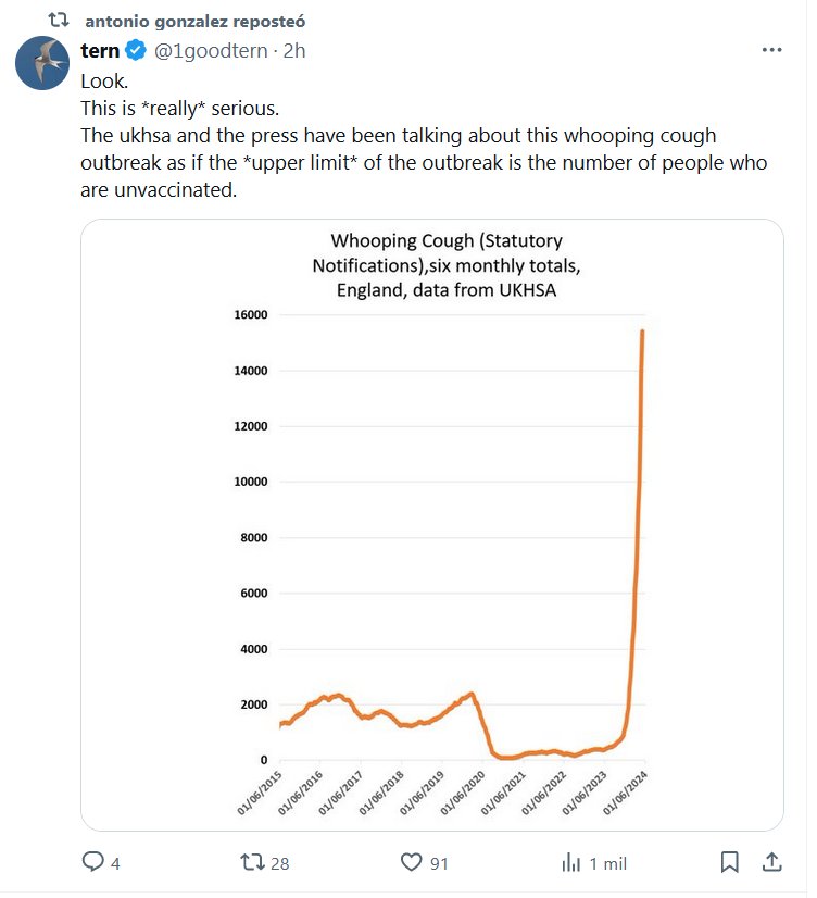 POSTCOVID HACE ESTRAGOS Mire. Esto es *realmente* serio. La ukhsa y la prensa han estado hablando de este brote de tos ferina como si el *límite superior* del brote fuera el número de personas que no están vacunadas.
