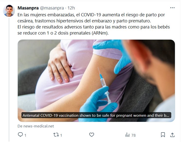 En las mujeres embarazadas, el COVID-19 aumenta el riesgo de parto por cesárea, trastornos hipertensivos del embarazo y parto prematuro. El riesgo de resultados adversos tanto para las madres como para los bebés se reduce con 1 o 2 dosis prenatales