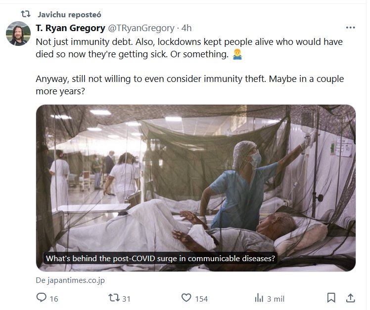 DE CAPITAL IMPORTANCIA (EN INGLÉS) «¿Qué hay detrás del aumento de enfermedades transmisibles posterior a la COVID?» Posted on junio 15, 2024 por coronado https://www.japantimes.co.jp/news/2024/06/15/world/science-health/post-covid-sickness-rise/