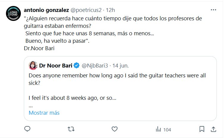 NODIGAMOSCOVID HACE ESTRAGOS «¿Alguien recuerda hace cuánto tiempo dije que todos los profesores de guitarra estaban enfermos? Siento que fue hace unas 8 semanas, más o menos… Bueno, ha vuelto a pasar». Dr.Noor Bari