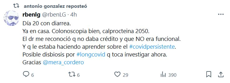 TESTIMONIOS Día 20 con diarrea. Ya en casa. Colonoscopia bien, calprocteina 2050. El dr me reconoció q no daba crédito y que NO era funcional. Y q le estaba haciendo aprender sobre el #covidpersistente. Posible disbiosis por #longcovid q toca investigar ahora.