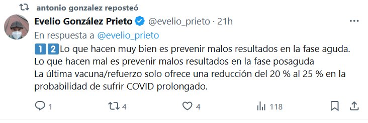 Lo que hacen muy bien es prevenir malos resultados en la fase aguda. Lo que hacen mal es prevenir malos resultados en la fase posaguda La última vacuna/refuerzo solo ofrece una reducción del 20 % al 25 % en la probabilidad de sufrir COVID prolongado.