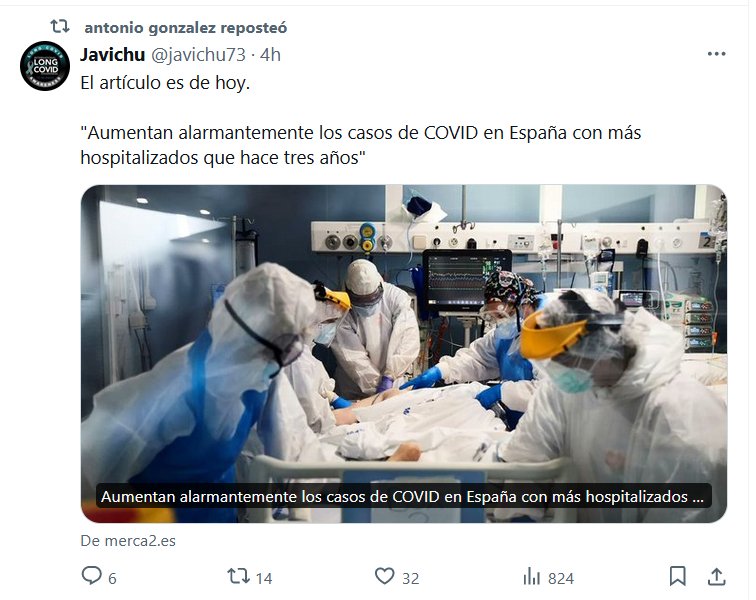 17JUNIO2024 El artículo es de hoy. «Aumentan alarmantemente los casos de COVID en España con más hospitalizados que hace tres años» Posted on junio 17, 2024 por coronado