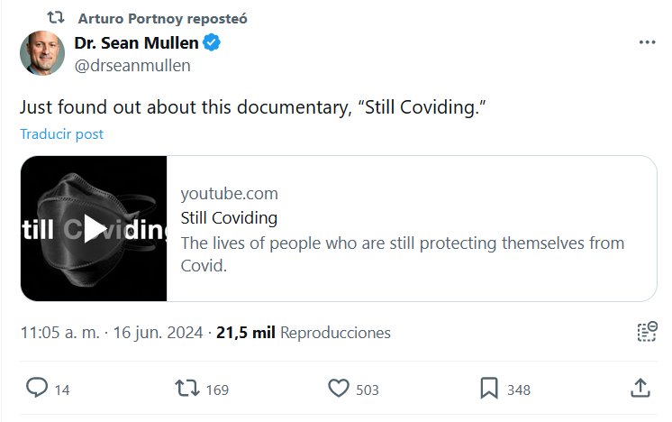 EN INGLÉS Dr. Sean Mullen @drseanmullen Acabo de enterarme de este documental, «Still Coviding» (INTRADUCIBLE: ¿TODAVÍA COVIDEANDO?) Posted on junio 17, 2024 por coronado