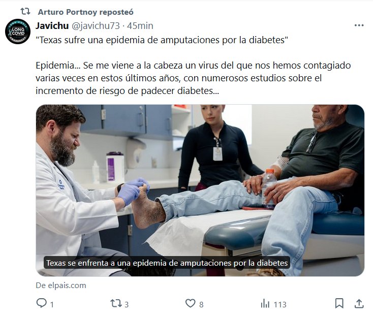 NODIGAMOS COVID HACE ESTRAGOS «Texas sufre una epidemia de amputaciones por la diabetes» Epidemia… Se me viene a la cabeza un virus del que nos hemos contagiado varias veces en estos últimos años, con numerosos estudios sobre el incremento de riesgo de padecer diabetes…