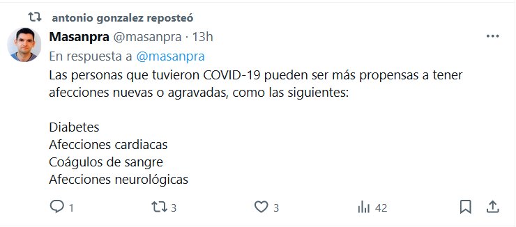 AUNQUE A NADIE LE IMPORTE! Las personas que tuvieron COVID-19 pueden ser más propensas a tener afecciones nuevas o agravadas, como las siguientes: Diabetes Afecciones cardiacas Coágulos de sangre Afecciones neurológicas