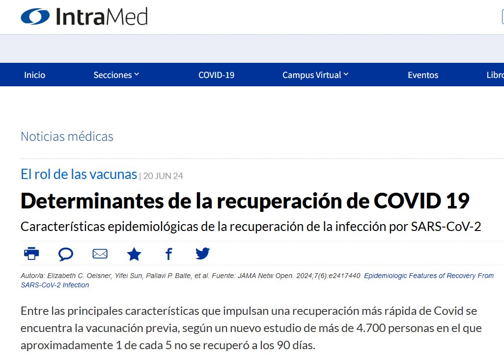 Determinantes de la recuperación de COVID 19 Entre las principales características que impulsan una recuperación más rápida de Covid se encuentra la vacunación previa, según un nuevo estudio Posted on junio 20, 2024 por coronado https://www.intramed.net/contenidover.asp?contenidoid=108820