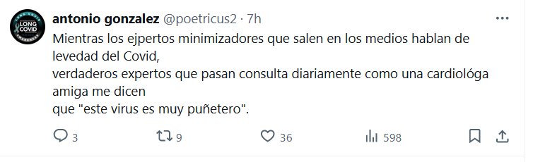 LA ÚNICA VERDAD ES LA REALIDAD, LO OTRO SE LLAMA MENTIRA Mientras los ejpertos minimizadores que salen en los medios hablan de levedad del Covid, verdaderos expertos que pasan consulta diariamente como una cardiológa amiga me dicen que «este virus es muy puñetero».