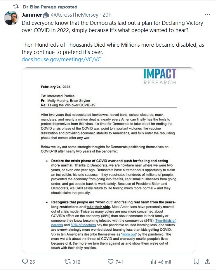 PRIMER INMUNDO (EN INGLÉS) ¿Sabían todos que los demócratas presentaron un plan para declarar la victoria sobre el COVID en 2022, simplemente porque es lo que la gente quería escuchar? Posted on junio 24, 2024 por coronado Y A PERÓN LO TILDABAN DE DEMAGOGO!!!