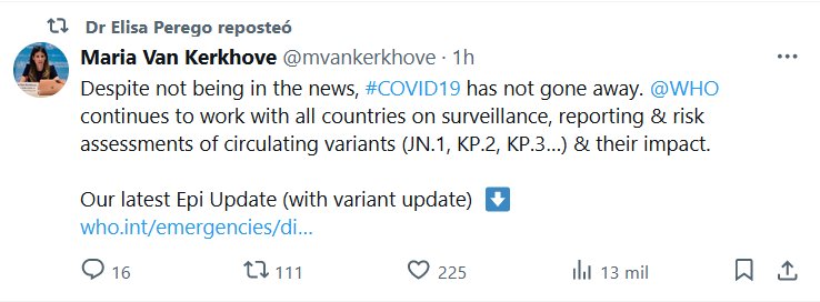 SHHH, ES SECRETO! (EN INGLÉS) A pesar de no ser noticia, el #COVID19 no ha desaparecido. @OMS continúa trabajando con todos los países en la vigilancia, notificación y evaluación de riesgos de las variantes circulantes (JN.1, KP.2, KP.3…) y su impacto.