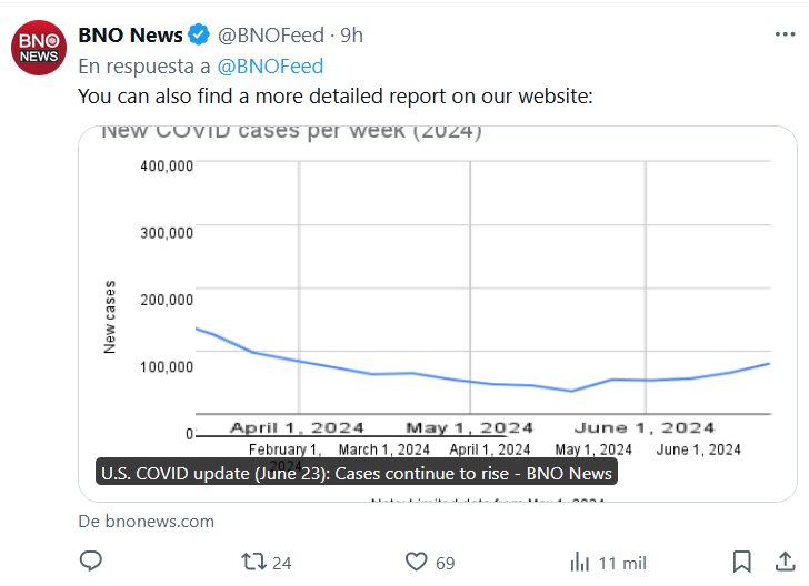 TENDENCIA Noticias de EE. UU. Actualización de COVID en EE. UU. (23 de junio): los casos continúan aumentando Posted on junio 24, 2024 por coronado https://bnonews.com/index.php/2024/06/u-s-covid-update-june-23-cases-continue-to-rise/