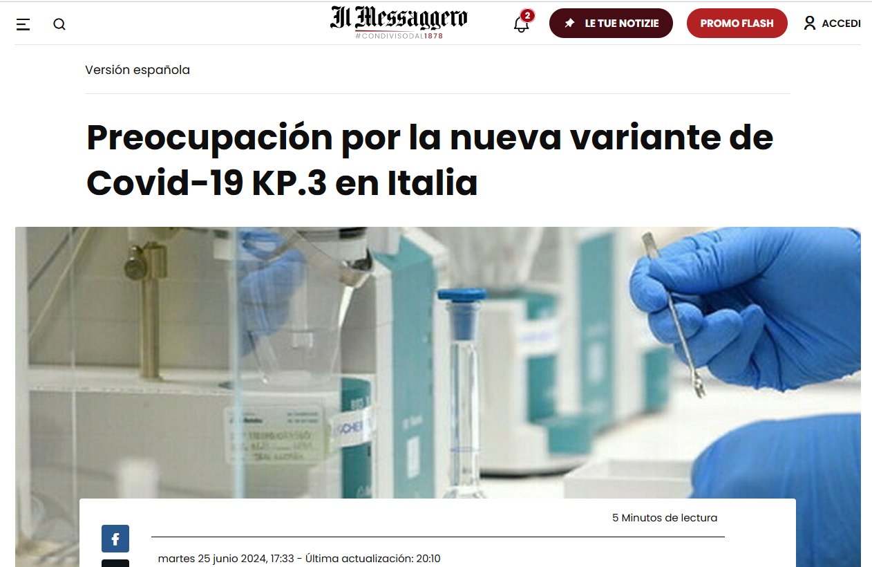 Preocupación por la nueva variante de Covid-19 KP.3 en Italia Posted on junio 25, 2024 por coronado https://www.ilmessaggero.it/es/preocupacion_por_la_nueva_variante_de_covid_19_kp.3_en_italia-8203176.html