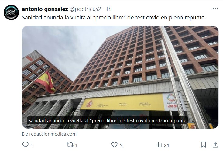 Sanidad anuncia la vuelta al «precio libre» de test covid en pleno repunte. Posted on junio 25, 2024 por coronado