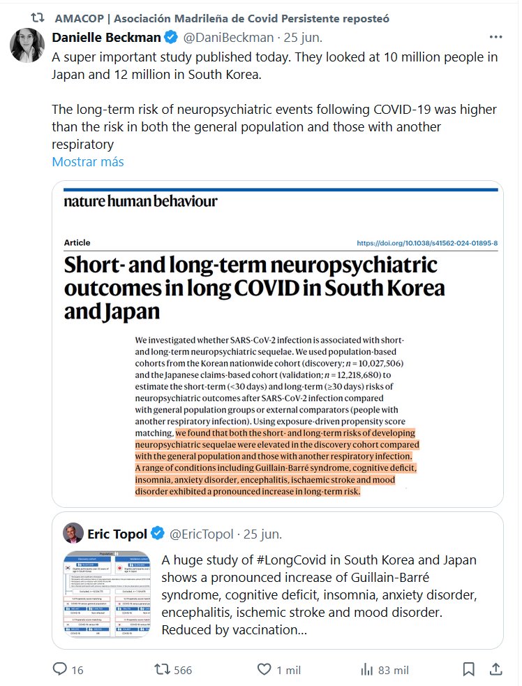 EN INGLÉS Un estudio súper importante publicado hoy. Observaron a 10 millones de personas en Japón y 12 millones en Corea del Sur. El riesgo a largo plazo de eventos neuropsiquiátricos después de COVID-19 fue mayor que el riesgo tanto en la población general como en aquellos con otra enfermedad respiratoria.