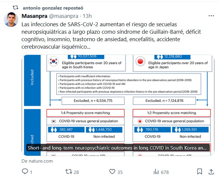 LOS SÍNTOMAS PODRÍAN SER LEVES PERO LAS SECUELAS NO! Las infecciones de SARS-CoV-2 aumentan el riesgo de secuelas neuropsiquiátricas a largo plazo como síndrome de Guillain-Barré, déficit cognitivo, insomnio, trastorno de ansiedad, encefalitis, accidente cerebrovascular isquémico…