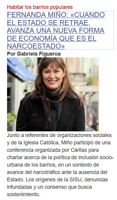 PESTE NARCOIMPERIO DEL MAL! FERNANDA MIÑO: «CUANDO EL ESTADO SE RETRAE, AVANZA UNA NUEVA FORMA DE ECONOMÍA QUE ES EL NARCOESTADO» Junto a referentes de organizaciones sociales y de la Iglesia Católica, Miño participó de una conferencia organizada por Cáritas