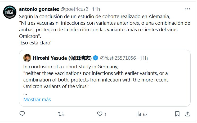 MASCARILLA! Según la conclusión de un estudio de cohorte realizado en Alemania, «Ni tres vacunas ni infecciones con variantes anteriores, o una combinación de ambas, protegen de la infección con las variantes más recientes del virus Omicron». Eso está claro