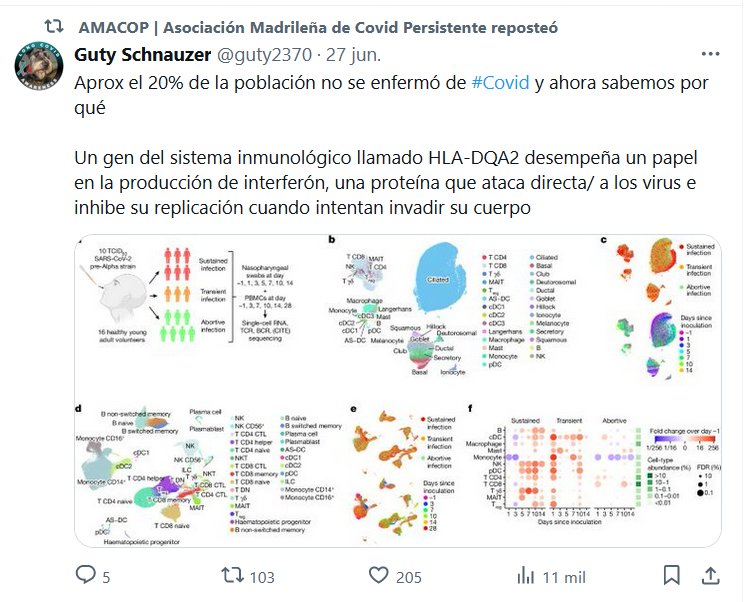 Aprox el 20% de la población no se enfermó de #Covid y ahora sabemos por qué Un gen del sistema inmunológico llamado HLA-DQA2 desempeña un papel en la producción de interferón, una proteína que ataca directa/ a los virus e inhibe su replicación cuando intentan invadir su cuerpo