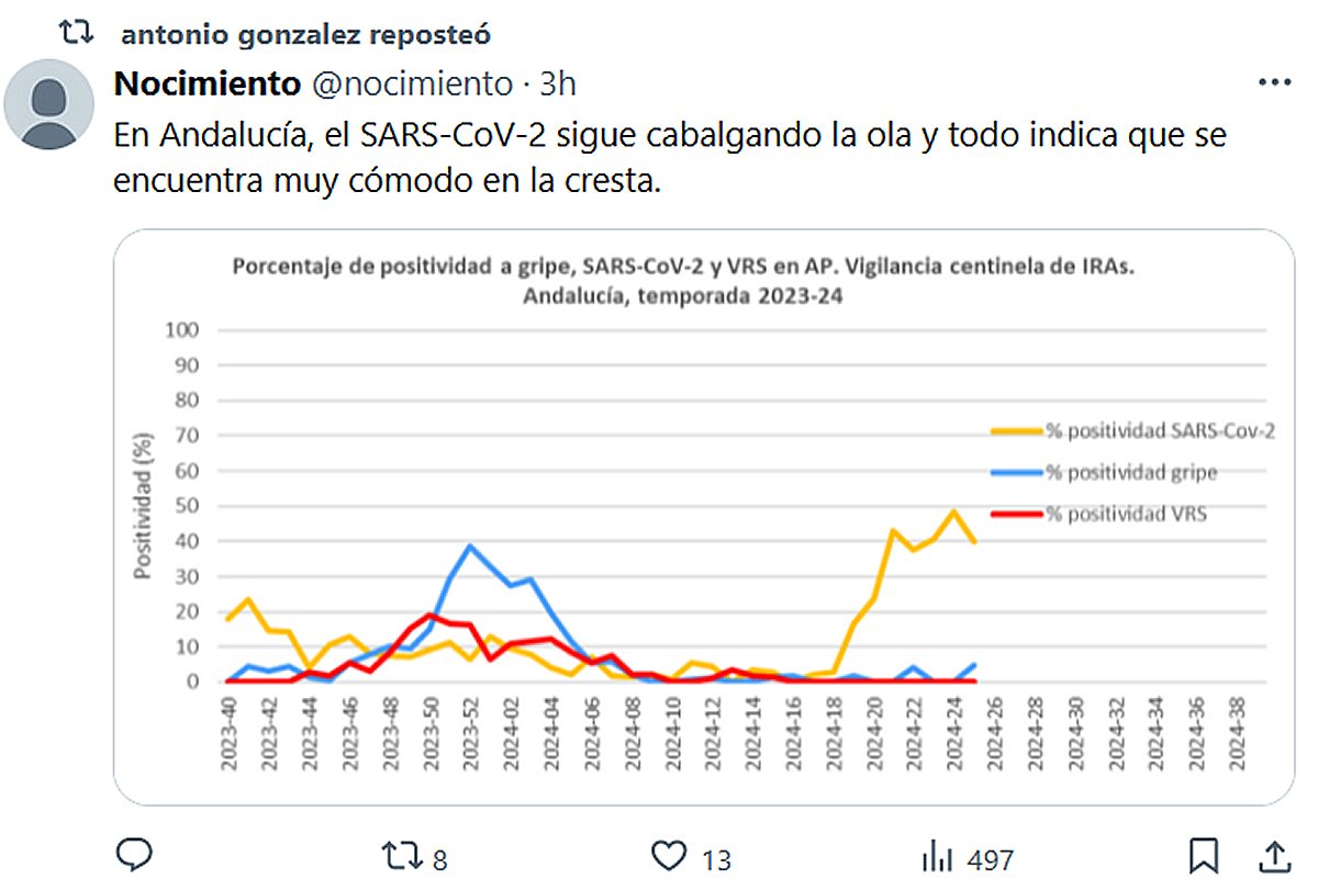 En Andalucía, el SARS-CoV-2 sigue cabalgando la ola y todo indica que se encuentra muy cómodo en la cresta. Posted on julio 2, 2024 por coronado