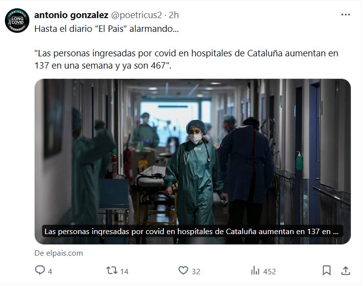 Hasta el diario «El Pais» alarmando… «Las personas ingresadas por covid en hospitales de Cataluña aumentan en 137 en una semana y ya son 467» Posted on julio 2, 2024 por coronado