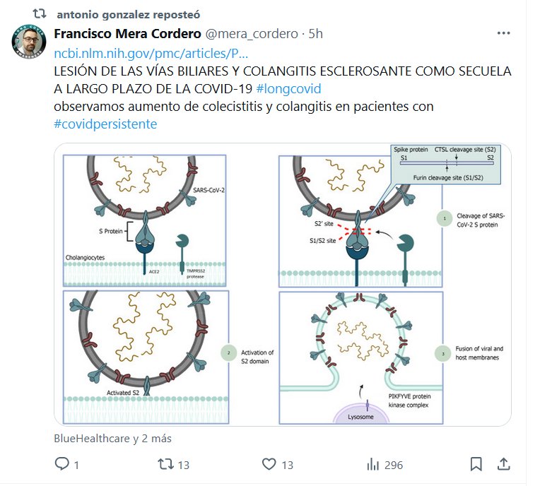 LESIÓN DE LAS VÍAS BILIARES Y COLANGITIS ESCLEROSANTE COMO SECUELA A LARGO PLAZO DE LA COVID-19 #longcovid Posted on julio 2, 2024 por coronado https://www.ncbi.nlm.nih.gov/pmc/articles/PMC11212712/