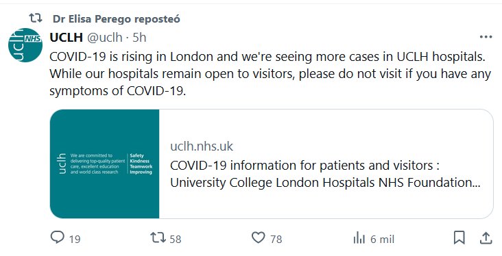 Y SI IMPONEN LA MASCARILLA? EN INGLÉS El COVID-19 está aumentando en Londres y estamos viendo más casos en los hospitales de la UCLH. Si bien nuestros hospitales permanecen abiertos a los visitantes, no los visite si tiene algún síntoma de COVID-19