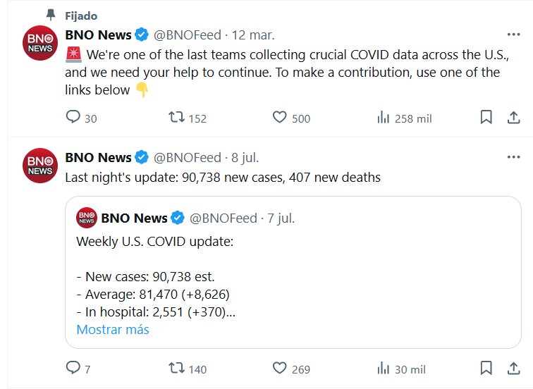 EN INGLÉS Actualización semanal de COVID en EE. UU.: – Casos nuevos: 90.738 est. – Promedio: 81.470 (+8.626) – Hospitalizados: 2.551 (+370) – En UCI: 230 (-) – Nuevas muertes: 407 – Promedio: 438 (-25) Nota: datos limitados Posted on julio 11, 2024 por coronado https://x.com/BNOFeed/status/1810071782876913959