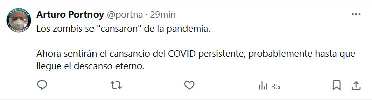 DON ARTURO BRUTAL, SINCERO Y FRANCO COMO UNA PUÑALADA! Los zombis se «cansaron» de la pandemia. Ahora sentirán el cansancio del COVID persistente, probablemente hasta que llegue el descanso eterno