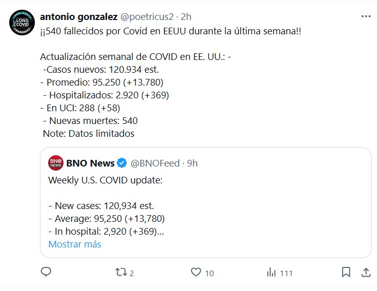 SERÍAN CASI 200.000 AL AÑO! ¡¡540 fallecidos por Covid en EEUU durante la última semana!! Actualización semanal de COVID en EE. UU.: – -Casos nuevos: 120.934 est. – Promedio: 95.250 (+13.780) – Hospitalizados: 2.920 (+369) – En UCI: 288 (+58) – Nuevas muertes: 540 Note: Datos limitados