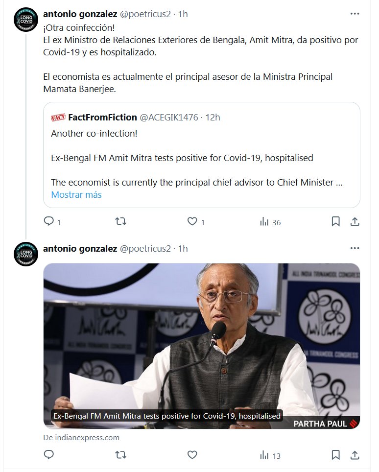 ¡Otra coinfección! El ex Ministro de Relaciones Exteriores de Bengala, Amit Mitra, da positivo por Covid-19 y es hospitalizado Posted on julio 16, 2024 por coronado
