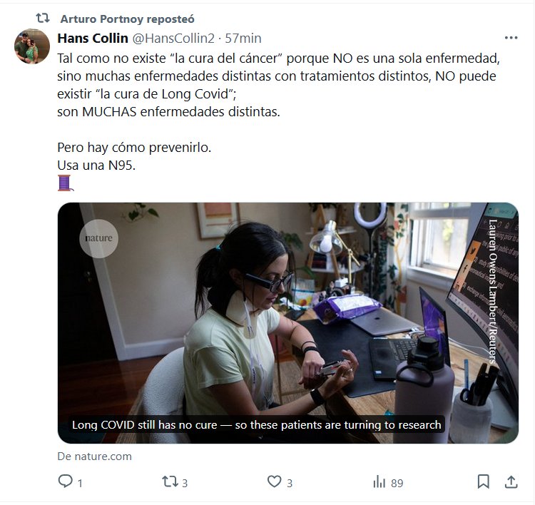 FELICITACIONES A HANS COLLIN QUE CON SU CLARO CONCEPTO CORRIGE A NATURE! "Long COVID still has no cure"