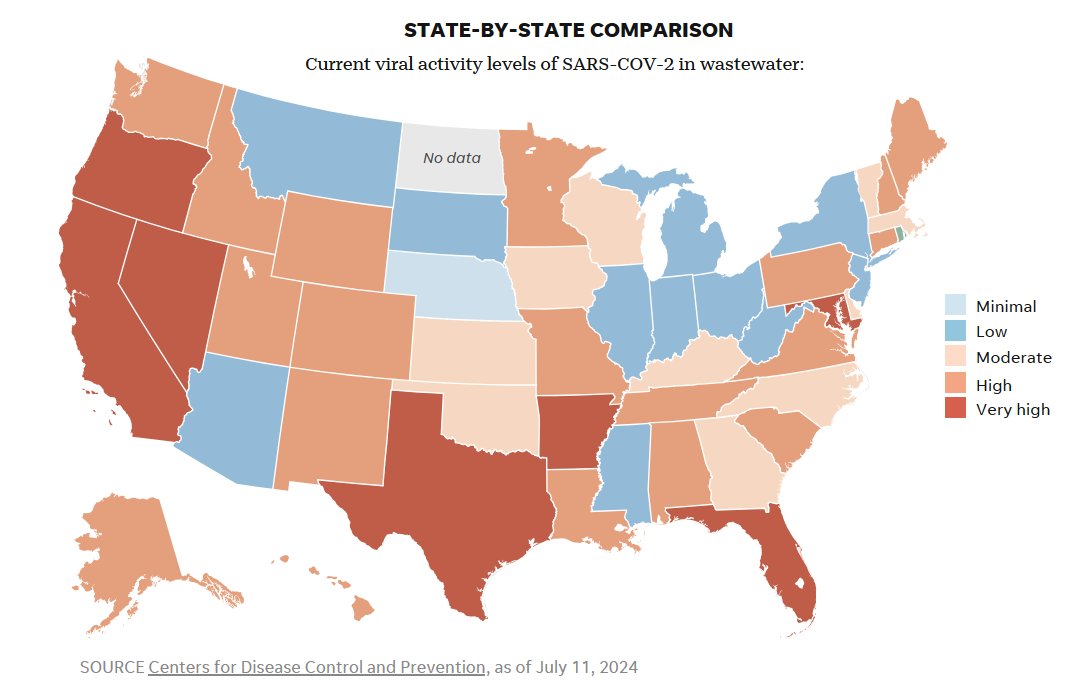 ESTADOS UNIDOS (USATODAY EN INGLÉS) Los niveles de COVID en verano están aumentando: realice un seguimiento de la propagación por región Posted on julio 17, 2024 por coronado https://www.usatoday.com/story/graphics/2024/07/17/covid-summer-wastewater-levels-surge/74414334007/