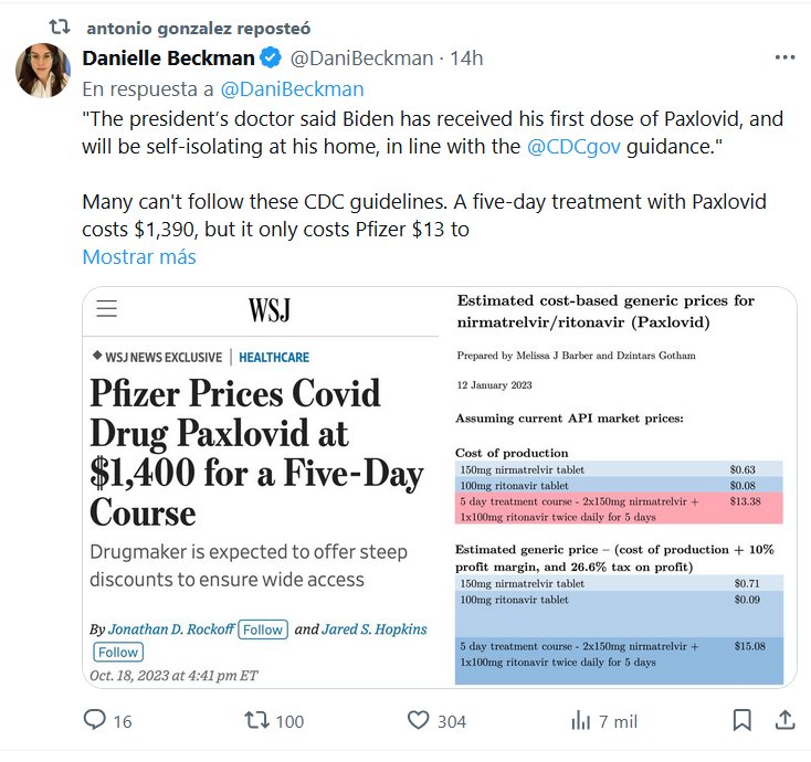 EN INGLÉS «El médico del presidente dijo que Biden recibió su primera dosis de Paxlovid y se aislará en su casa, según guía @CDCgov. .» Posted on julio 18, 2024 por coronado