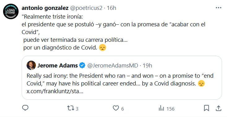DEMOCRACIA=PODER DEL PUEBLO / DEMOCRA.CIA= PODER DEL PADRE DE LA MENTIRA «Realmente triste ironía: el presidente que se postuló –y ganó– con la promesa de “acabar con el Covid”, puede ver terminada su carrera política… por un diagnóstico de Covid. 😞