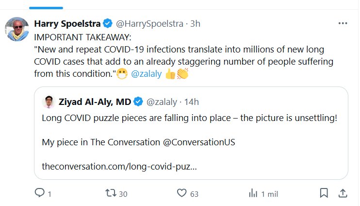 EN INGLÉS CONCLUSIÓN IMPORTANTE: «Las infecciones nuevas y repetidas por COVID-19 se traducen en millones de nuevos casos prolongados de COVID que se suman a un número ya asombroso de personas que padecen esta afección». 😷 @zalaly 👍👏