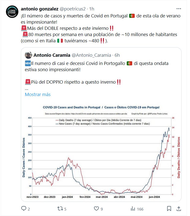 FIN DE PANDEMIA O DE LA VIDA? ¡El número de casos y muertes de Covid en Portugal 🇵🇹 de esta ola de verano es impresionante! 🚨Más del DOBLE respecto a este invierno‼️ 🚨80 muertes por semana en una población de ~10 millones de habitantes (como si en Italia 🇮🇹 tuviéramos ~480‼️)