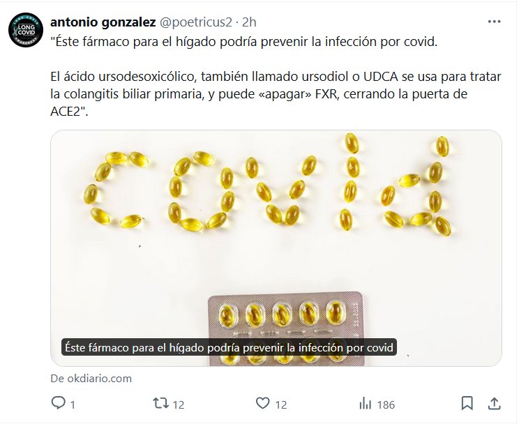 LA ESPERANZA EN EL FONDO DE LA CAJA COVID ABIERTA «Éste fármaco para el hígado podría prevenir la infección por covid. El ácido ursodesoxicólico, también llamado ursodiol o UDCA se usa para tratar la colangitis biliar primaria, y puede «apagar» FXR, cerrando la puerta de ACE2″