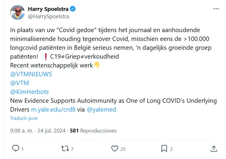EN HOLANDÉS En lugar de sus «cosas de Covid» durante las noticias y su persistente actitud minimizadora hacia Covid, tal vez tome en serio a los más de 100.000 pacientes con Covid de larga duración en Bélgica, ¡un grupo de pacientes que crece cada día! ❗️C19≠Gripe≠resfriado Trabajo científico reciente👇