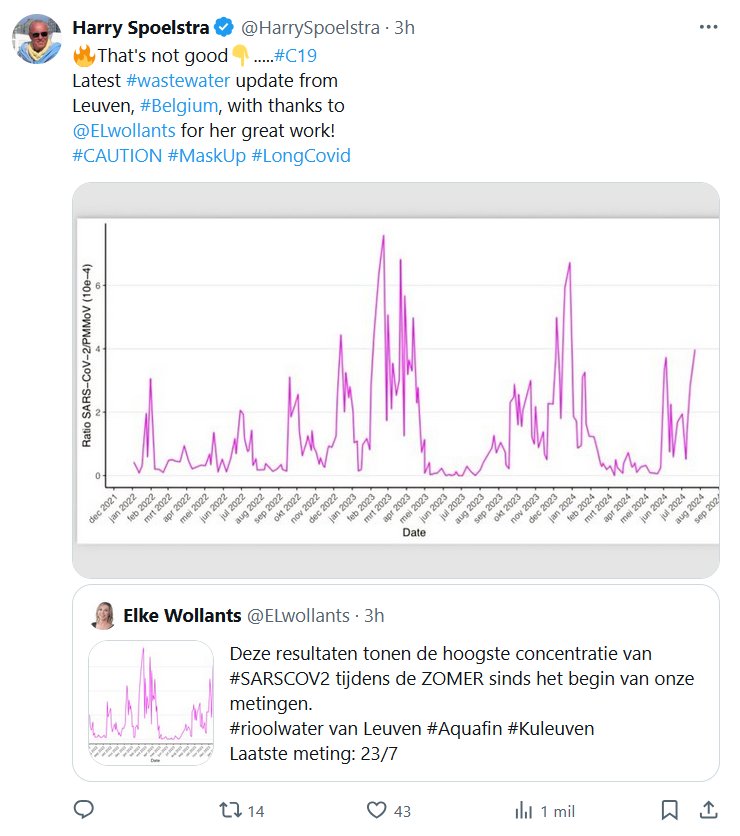EN INGLÉS 🔥Eso no es bueno👇…..#C19 Última actualización de #aguas residuales de Lovaina, #Bélgica, con agradecimiento a @ELwollants por su gran trabajo! #PRECAUCIÓN #MaskUp #LongCovid Posted on julio 24, 2024 por coronado https://x.com/ELwollants/status/1816058104783511997