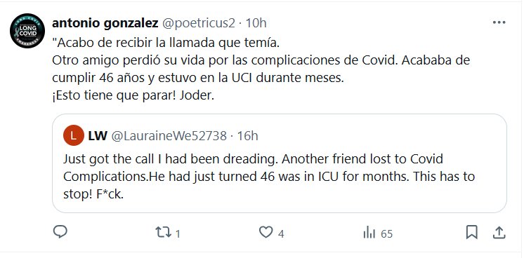 TESTIMONIOS «Acabo de recibir la llamada que temía. Otro amigo perdió su vida por las complicaciones de Covid. Acababa de cumplir 46 años y estuvo en la UCI durante meses. ¡Esto tiene que parar! Joder.