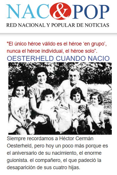 EL CORONAVIRUS NO ES EL ÚNICO ASESINO: EN LOS 70 LO ASESINARON CON TODA SU FAMILIA «El único héroe válido es el héroe ‘en grupo’, nunca el héroe individual, el héroe solo”. OESTERHELD Posted on julio 25, 2024 por coronado https://nacionalypopular.com/2024/07/24/oesterheld-cuando-nacio/#more-135840