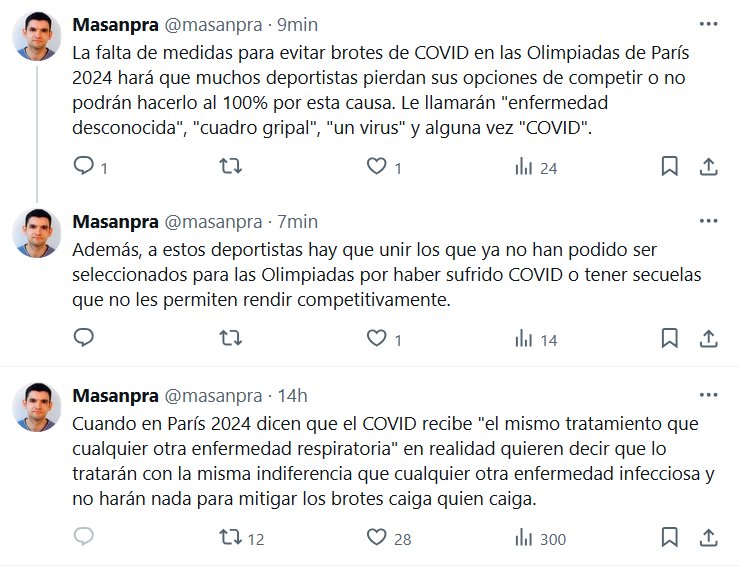La falta de medidas para evitar brotes de COVID en las Olimpiadas de París 2024 hará que muchos deportistas pierdan sus opciones de competir o no podrán hacerlo al 100% por esta causa. Le llamarán «enfermedad desconocida», «cuadro gripal», «un virus» y alguna vez «COVID».
