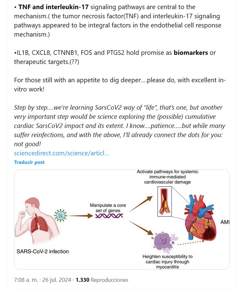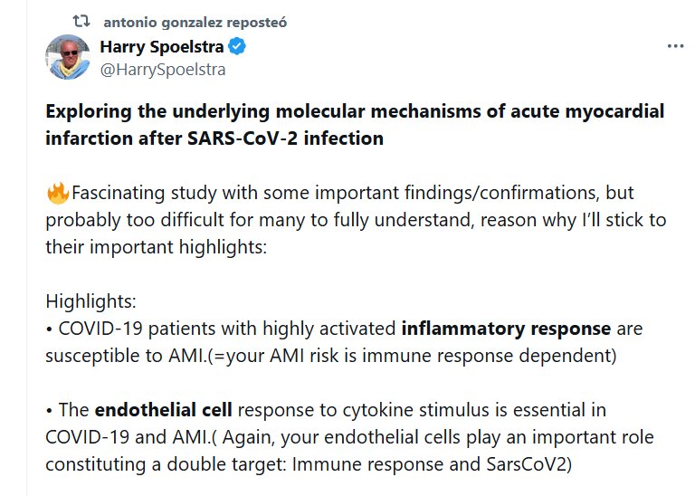 EN INGLÉS Exploración de los mecanismos moleculares subyacentes del infarto agudo de miocardio después de la infección por SARS-CoV-2 🔥Estudio fascinante con algunos hallazgos/confirmaciones importantes, pero probablemente demasiado difícil de entender por completo para muchos, por lo que me limitaré a su punto más destacado