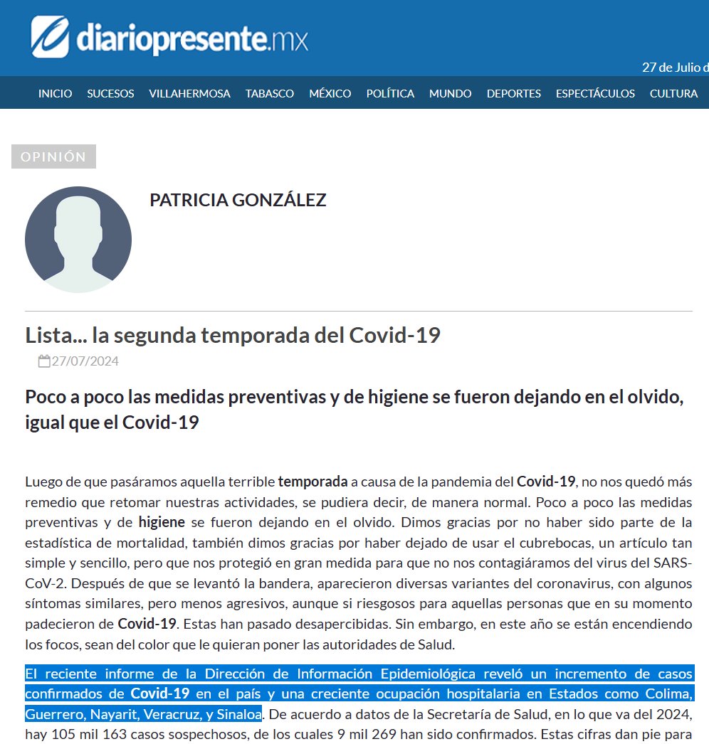 El reciente informe de la Dirección de Información Epidemiológica reveló un incremento de casos confirmados de Covid-19 en el país y una creciente ocupación hospitalaria en Estados como Colima, Guerrero, Nayarit, Veracruz, y Sinaloa